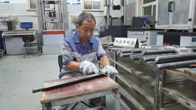 说起这把尺子,朱师傅告诉我,别看它是钢制的,每年都要坏上几把,这是他给钢筋打原始标距磨出来的。原始标距是做力学试验的基础,它的准确程度直接影响到检测结果。