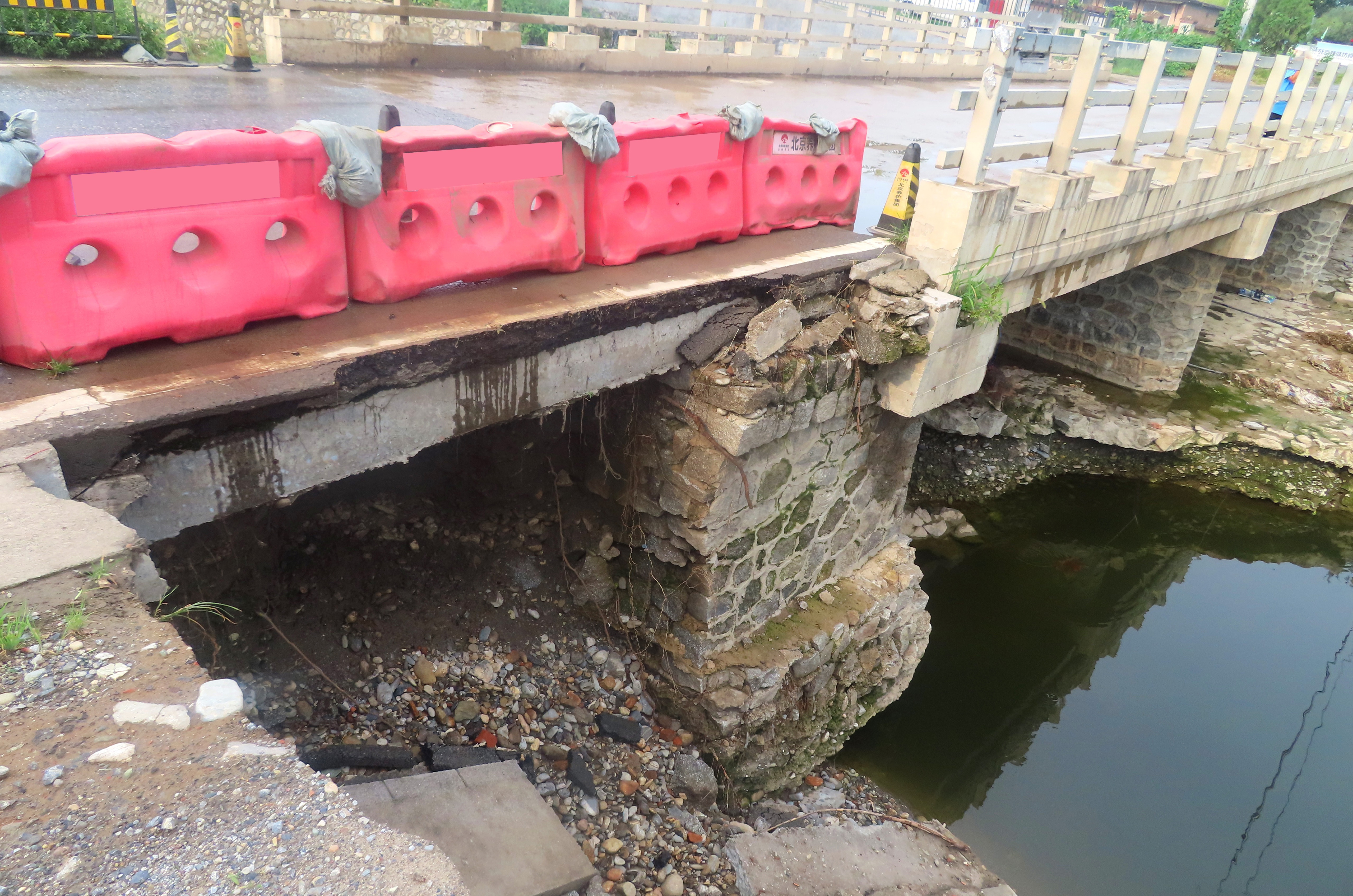 8月5日,检测人员在巡查过程中发现瓦井桥存在严重冲刷现象,桥台基础出现脱空,台背填土局部塌陷,严重影响周边群众出行安全。项目组第一时间上报房山公路分局,建议立即封闭交通,安排相关人员对桥梁进行维修加固处理。房山公路分局接到报告后,高度重视及时组织施工,并委托三检所对该桥做进一步检测。