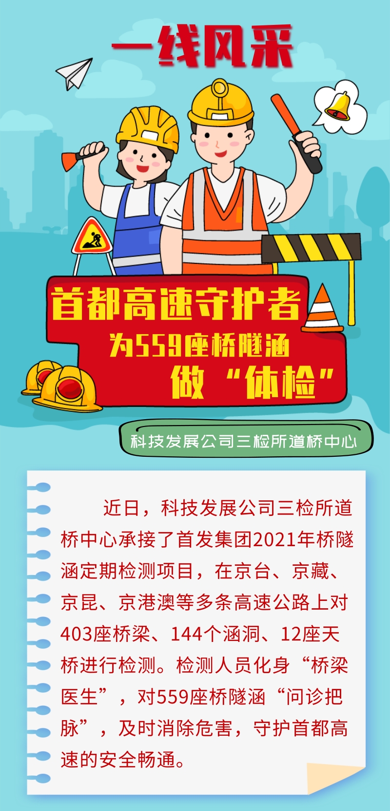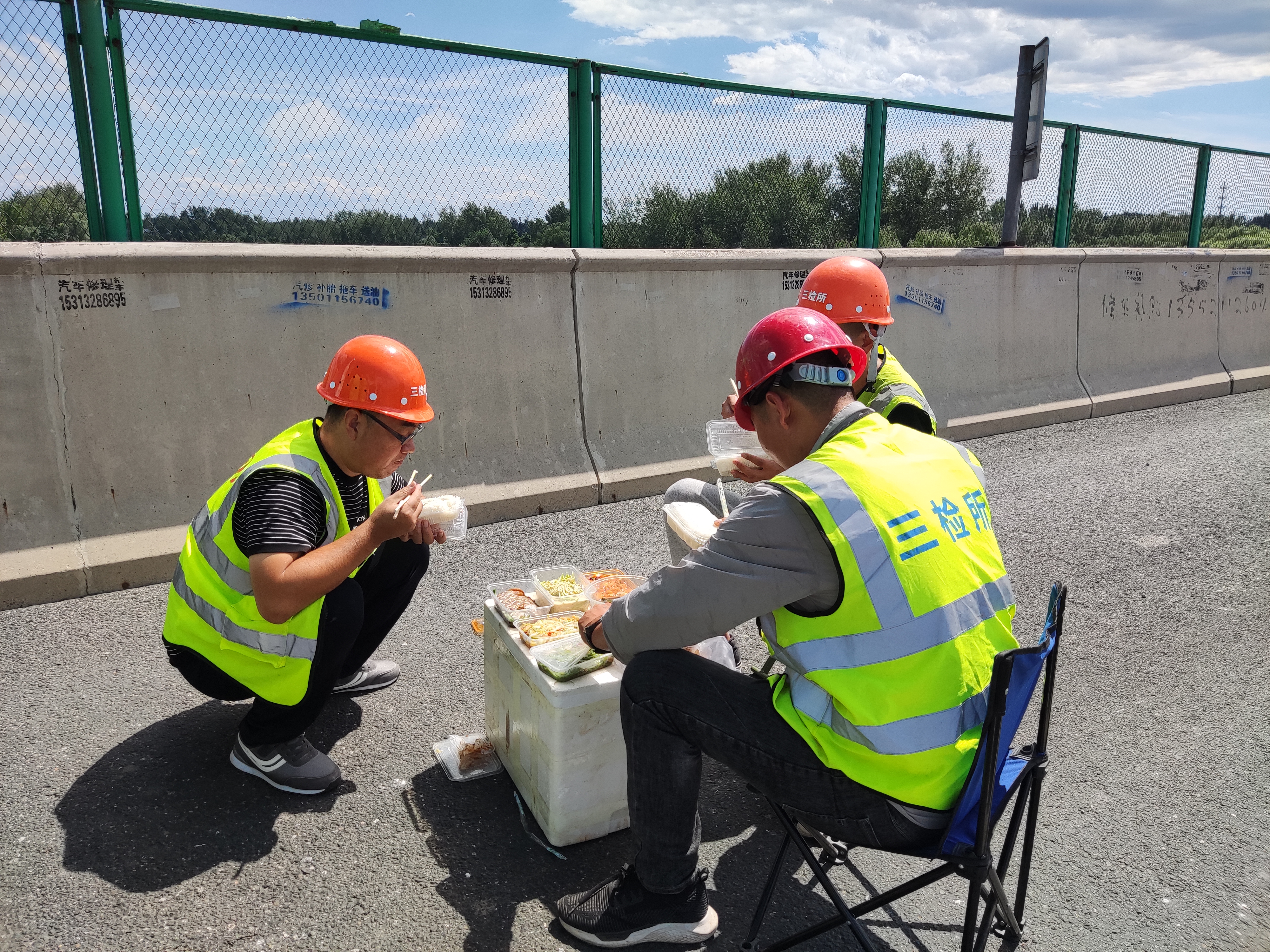 ▲顶骄阳、战酷暑、排隐患、保精准,道桥中心的检测工作者们“以桥为家”,夜以继日全力以赴, 用专业与敬业守护首都高速!