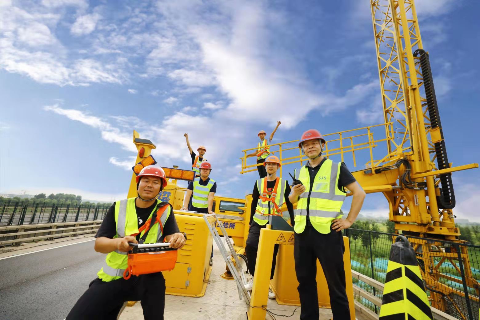 ▲为保证高质量完成检测工作,道桥中心投入多套仪器设备,桥检车的助力更是大大提高了工作效率。在桥下形成的独立工作平台,方便检测人员移动工作,9名检测人员分为4组,平均每天能够检测20座桥梁。