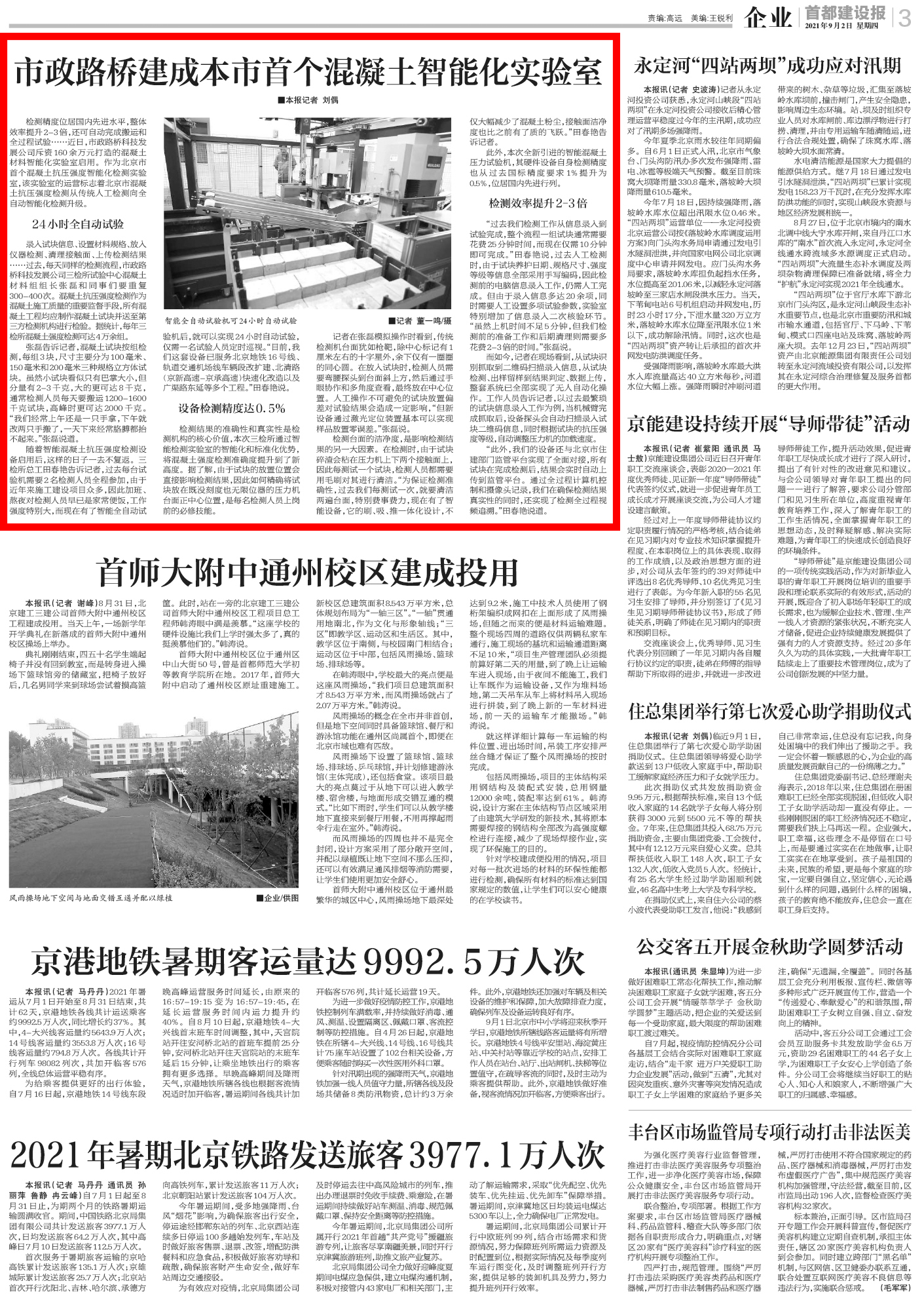 数字开启未来,服务促进发展。中国国际服务贸易交易会于今天开幕,作为八个专题展之一的工程咨询与建筑服务展将于9月3日至7日在北京首钢园区举办。届时,科技发展公司将携多项新技术、新成果、新应用亮相服贸会现场。其中,三检所智能化实验室将以视频形式展示智能混凝土抗压强度检测系统。作为北京市首个能够实现24小时无人化检测的实验室,在服贸会开展前就备受关注,北京卫视、《首都建设报》等多家媒体相继报道,预热服贸会,智享新未来!