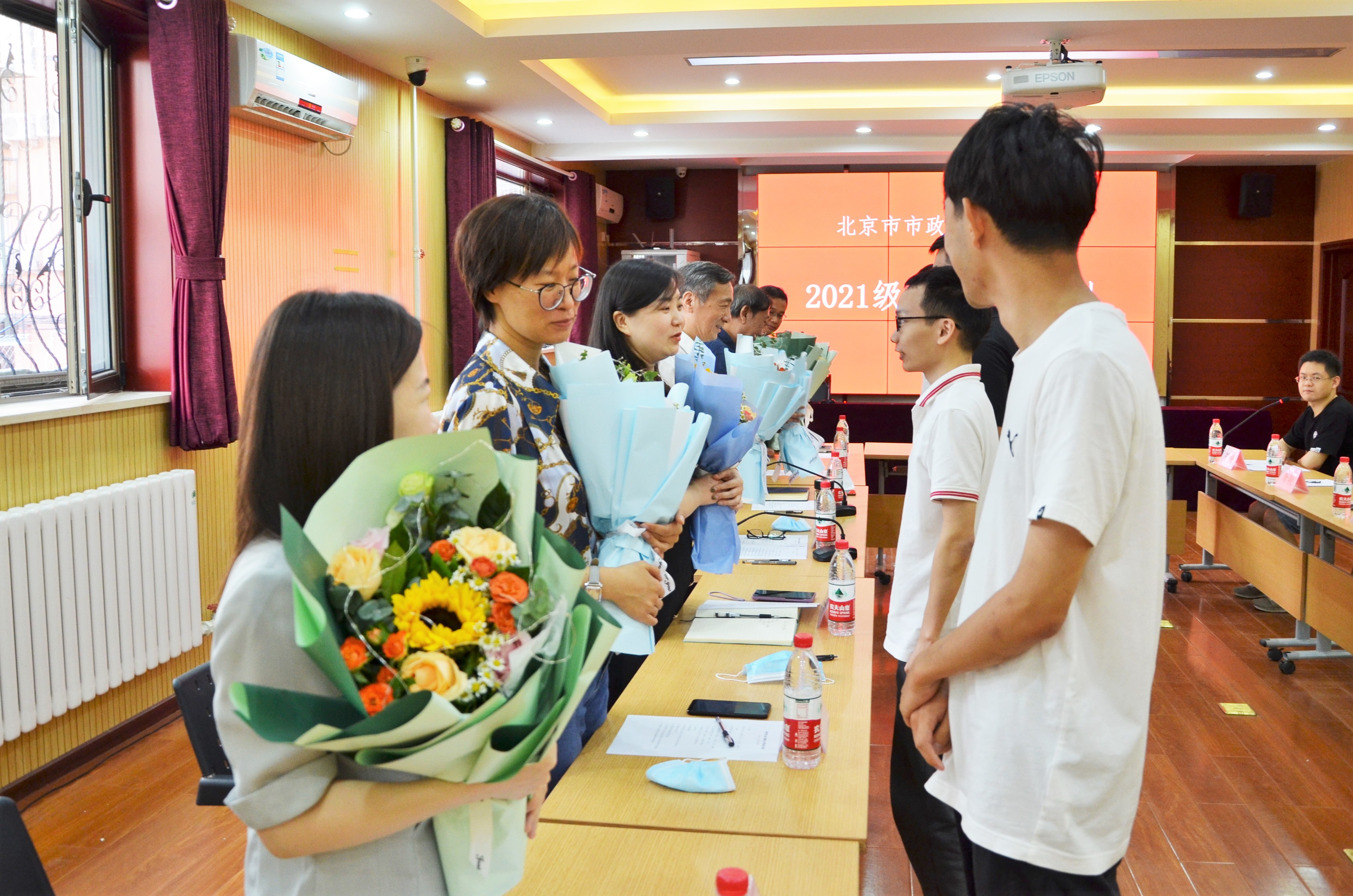 学生为院领导和导师献花
