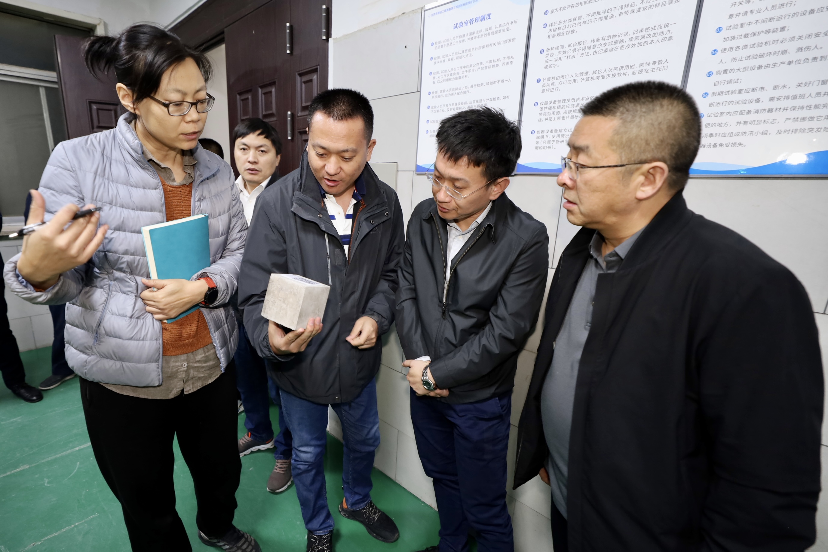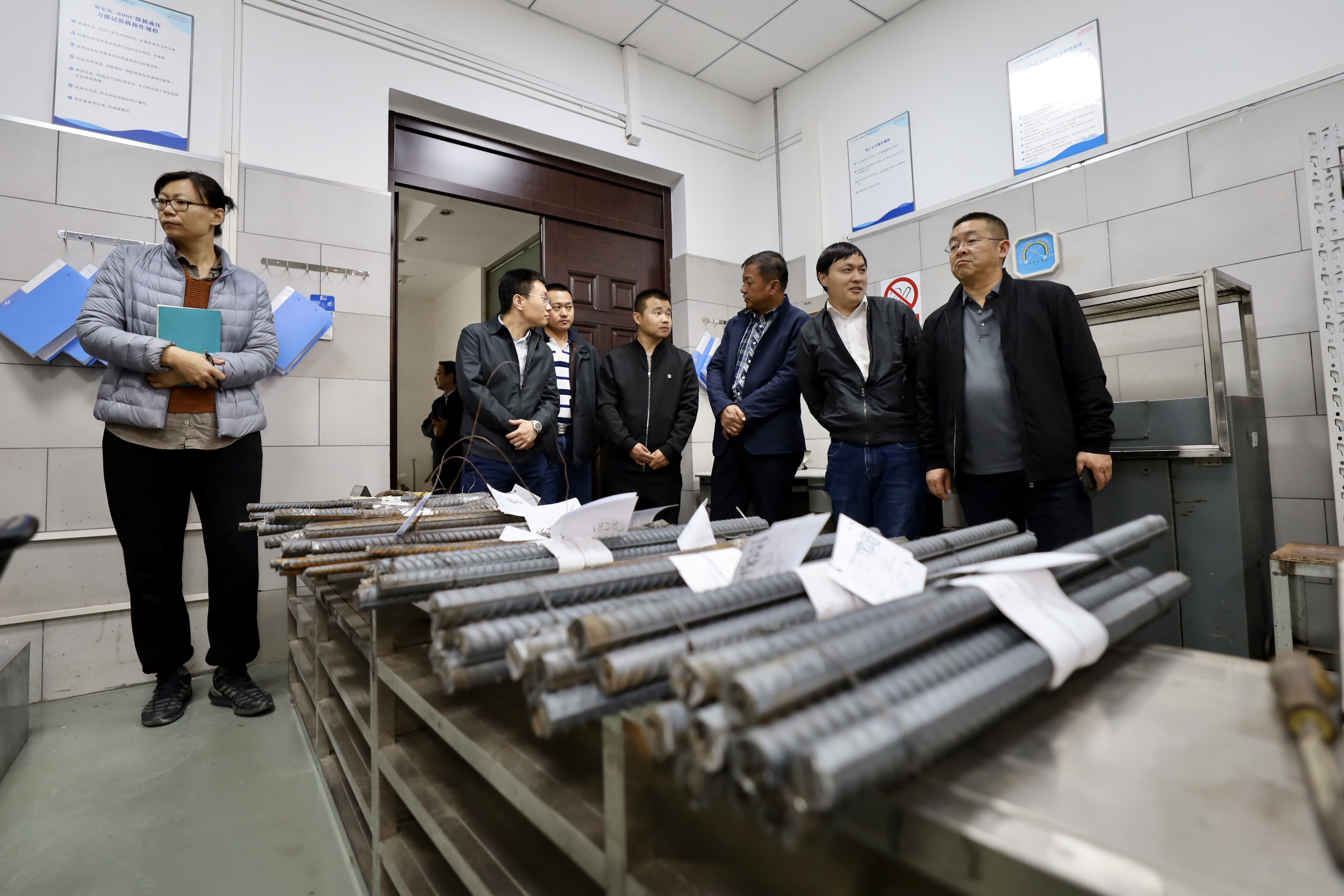 座谈结束后,考察团一行前往三检所试验中心,参观了智能混凝土抗压强度检测实验室、钢筋力学实验室、混凝土材料试验室和检测业务大厅。考察团对三检所的业务范围和优势有了更加深入的了解,为进一步加强合作奠定了基础。