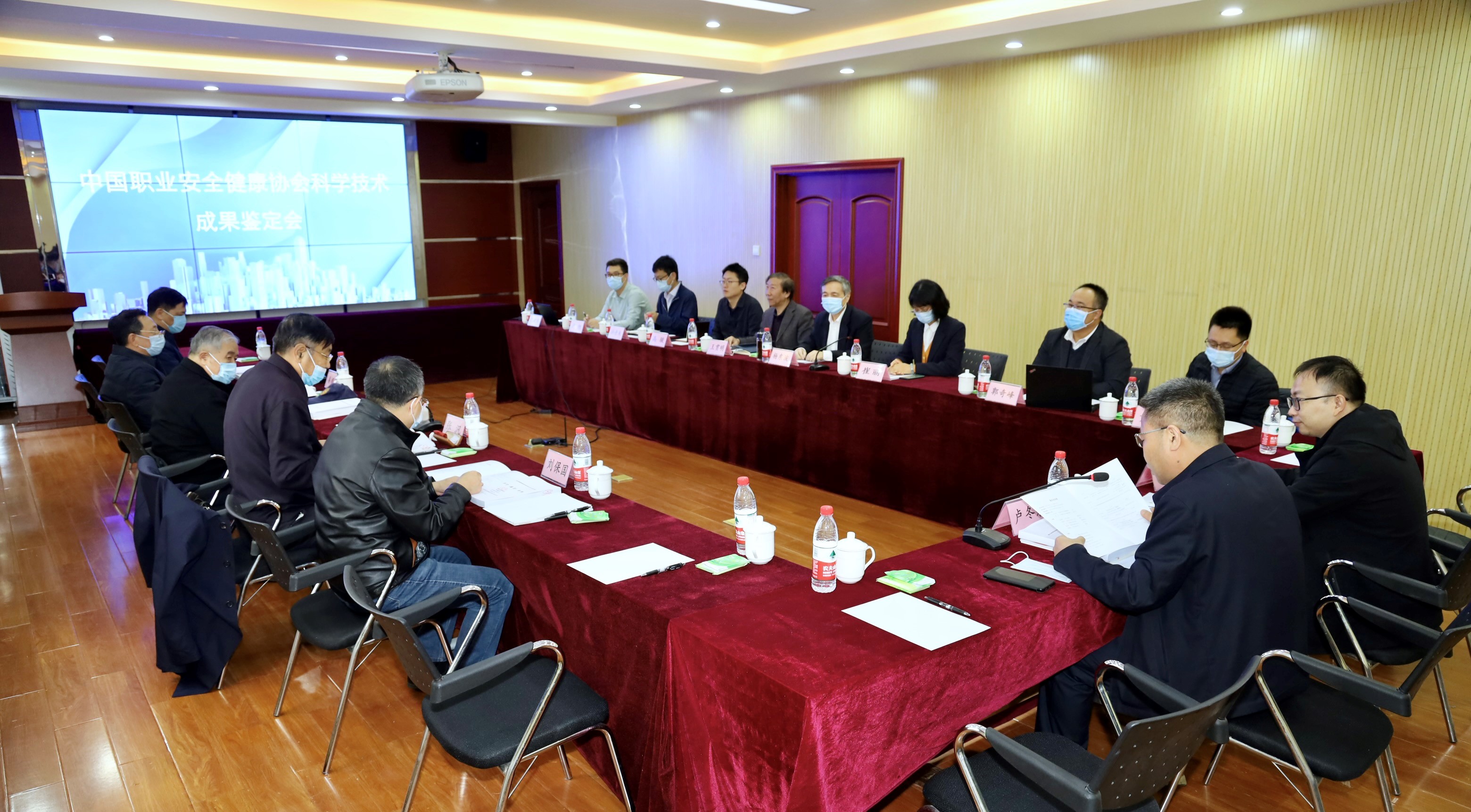鉴定专家组由中国工程院院士蔡美峰教授,中国矿业大学(北京)副校长姜耀东教授等5名专家组成,中国职业安全健康协会主任卢冬泉,副主任高旭,科技发展公司党委书记、董事长、研究院党总支书记杨东波,科技发展公司总工程师、研究院副院长崔丽,研究院副院长王贯明,项目组成员出席会议。
