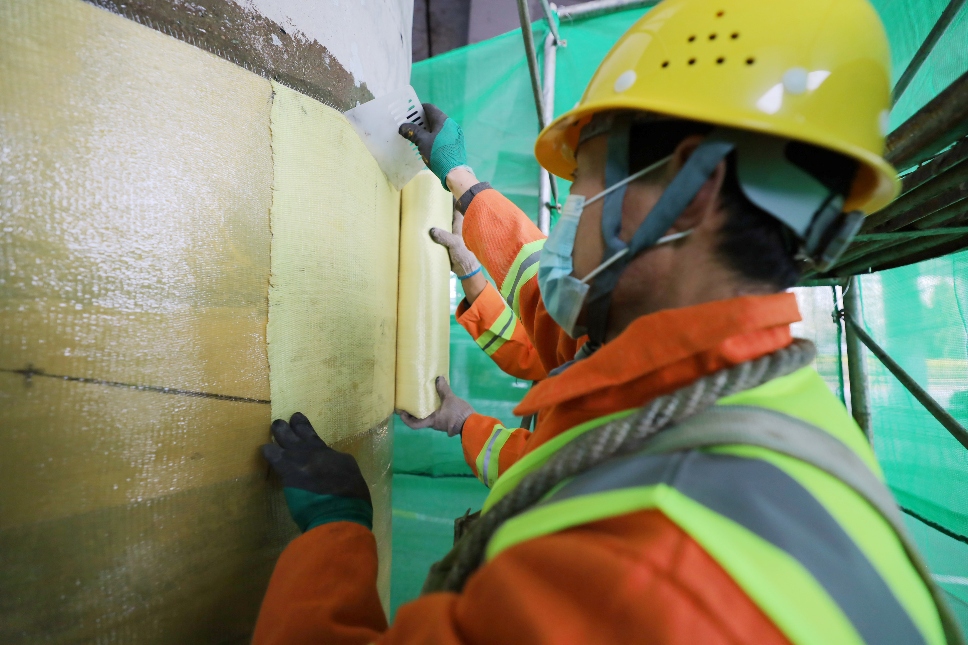 ▲芳纶纤维布具有抗拉、抗剪、抗腐蚀等优异性能,粘贴加固的800平米芳纶纤维布,不仅提升了桥梁的抗震性能和承载能力,材料绝缘的特性更为后期桥梁景观照明提供了安全运行环境。