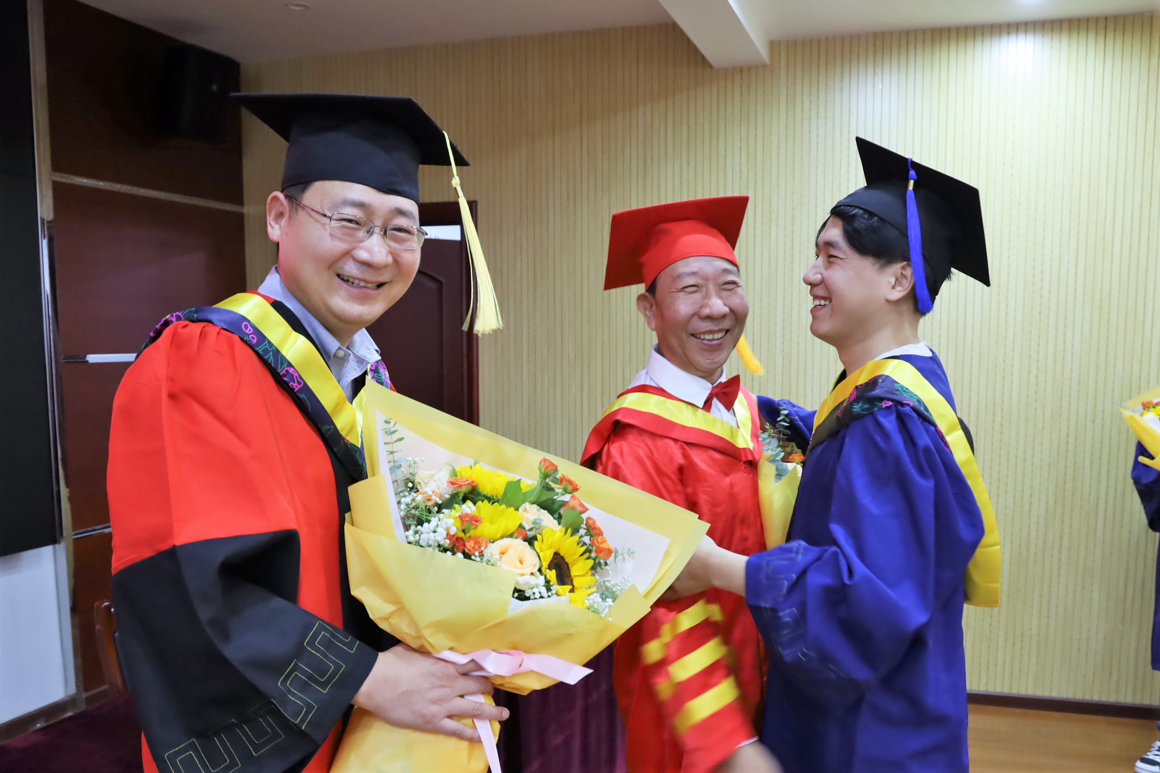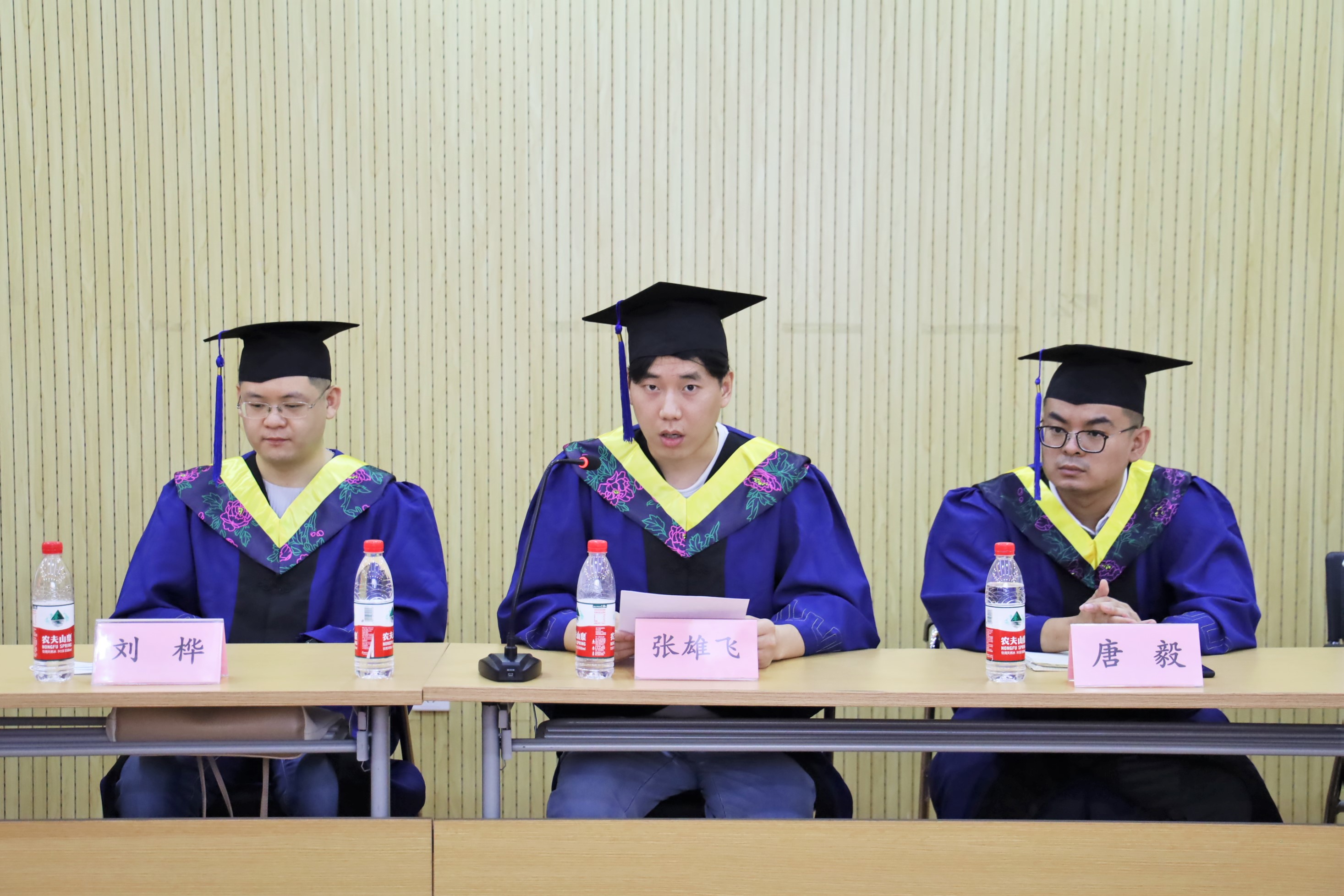 张雄飞代表毕业生发言,他回顾了在研究院求学的三年时光,向导师们的悉⼼教导和精心培养表示衷心的感谢。他表示,会牢记导师们的谆谆教诲,从感恩出发、从谦卑做起,用努⼒和成功为母校争光添彩。