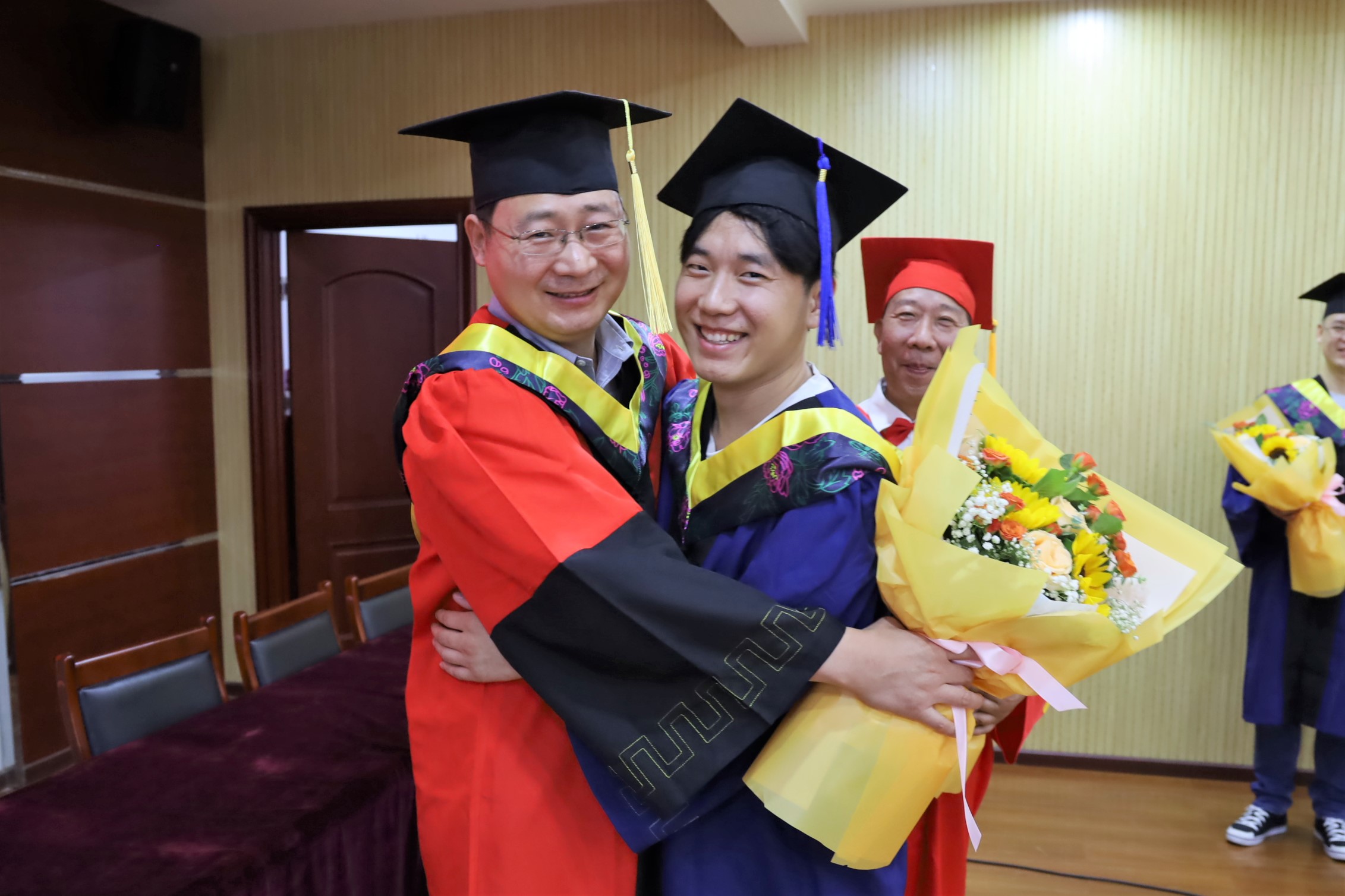 毕业生向导师献上鲜花,与导师亲切拥抱