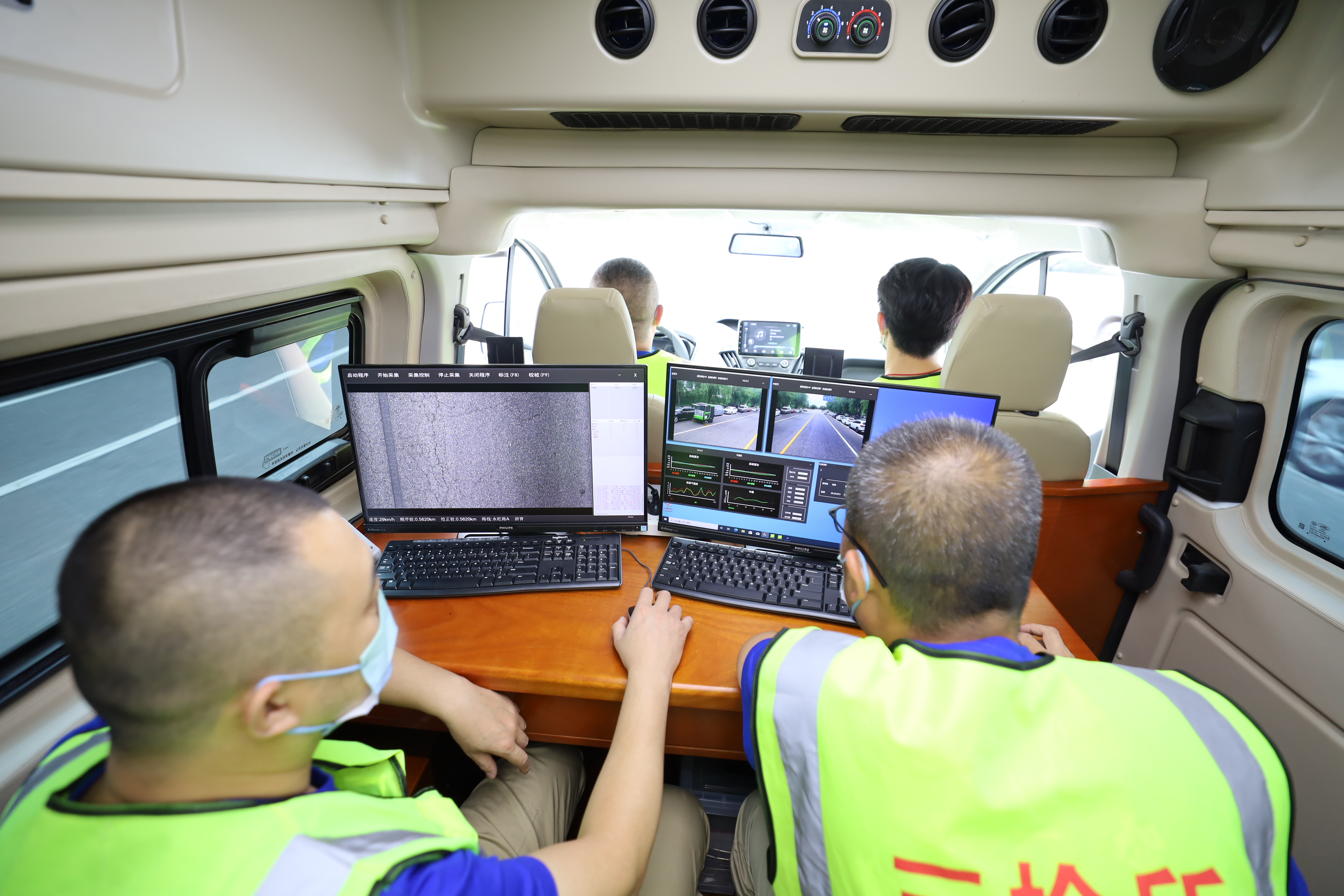 “以往我们用眼看步量的方法对路面病害逐一摸排,天气炎热不说,效率还低,一组4个人,一下午也就检测5公里。现在有了这台车,吹着空调,一下午能干完一周的活。”三检所试验中心的检测人员谈起这辆车纷纷赞不绝口。这台最快100公里/小时的检测“利器”,能够保持高通过性的同时,还具有高精准和高稳定性。搭载的高清摄像机每2米捕捉一张道路图片,配合GPS的精准定位,让道路病害无处可藏。