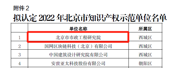 近日,北京市知识产权局公布了2022年度北京市知识产权试点示范单位名单,科技发展公司研究院凭借持续自主创新和高标准、严要求的知识产权管理,荣获北京市知识产权示范单位称号,是西城区获批3家单位中唯一的科研院所。