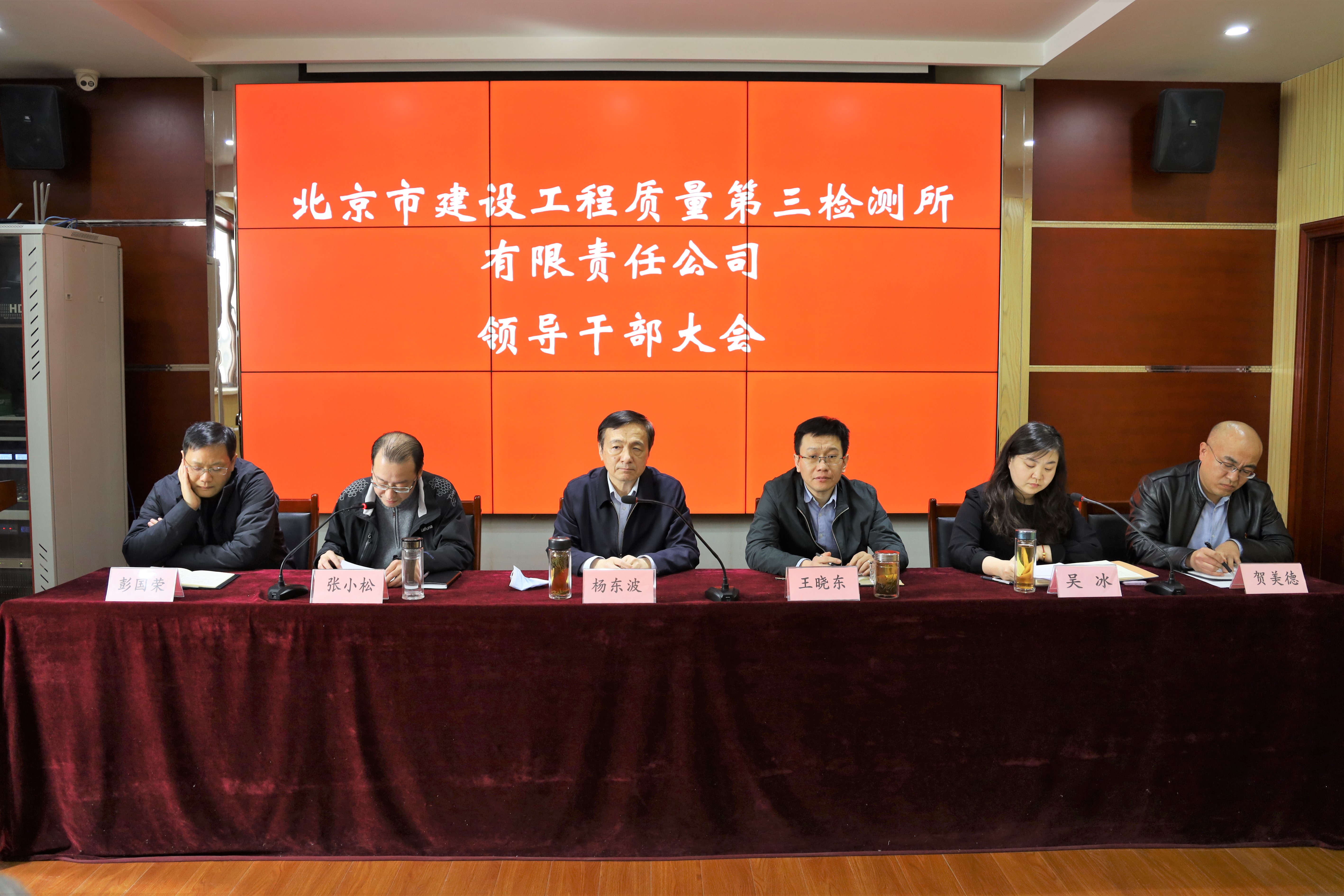 公司组织人事部部长吴冰宣布了关于三检所主要领导调整的决定。经科技发展公司党委研究决定,彭国荣同志任北京市建设工程质量第三检测所有限责任公司董事长;贺美德同志任北京市建设工程质量第三检测所有限责任公司党总支书记、董事、总经理。