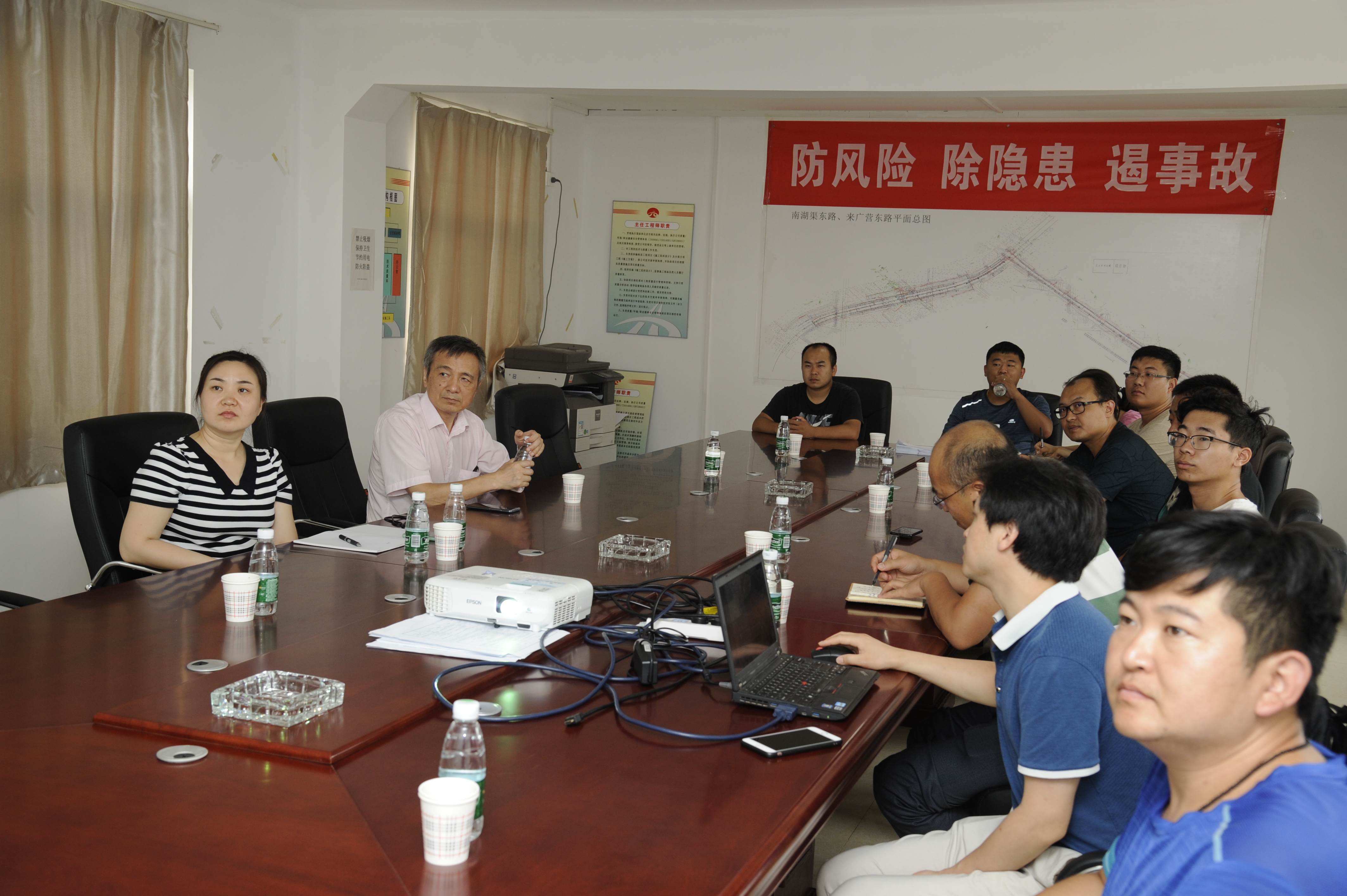 在听取项目人员简要汇报后纪委书记王晓东与大家亲切交流,感谢大家辛苦的付出,叮嘱大家保重身体,做好现场安全防护,在安全健康的前提下,保质保量做好现场监测工作,并勉励大家不忘初心,牢记确保工程质量安全的重要使命!最后,一行人员前往检测现场进行参观考察。