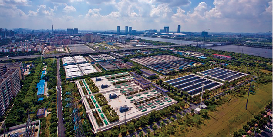 b) 广州是猎德污水处理厂:是广州市第2座大型城市污水处理厂。服务面积228平方公里,服务人口约296万人。