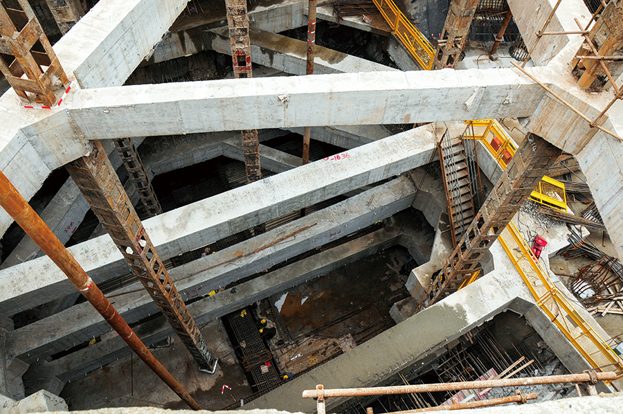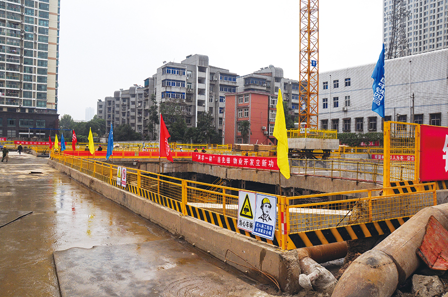 b) 武汉市轨道交通8号线工程徐家棚站k9配套综合楼工程:本建筑结构形式采用钢筋混凝土框架-剪力墙结构体系:建筑层数:地下三层,地上30层;建筑高度130M。基坑形式为坑中坑,交错施工,施工风险极高,难度极大。