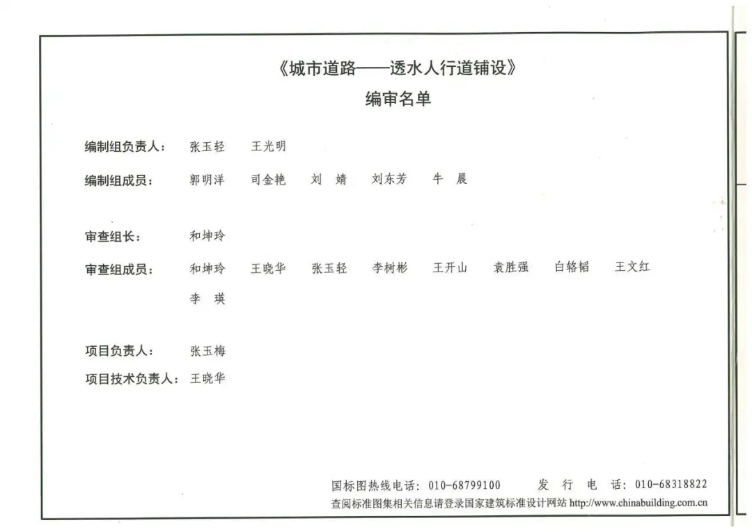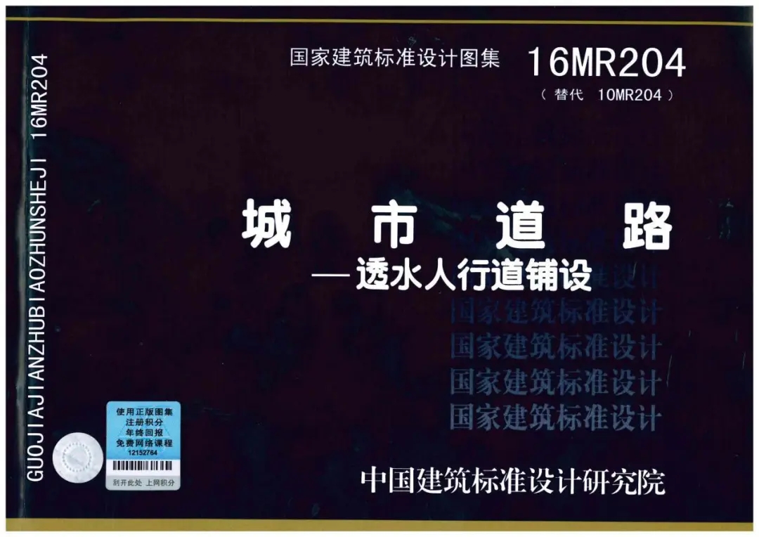 本次修编是在原10MR204图集的基础上进行的,结合透水性铺装的最新建设理念和实践经验,扩大了透水人行道铺设的内涵及外延。原图集主要是针对城市道路透水性人行道的结构设计,本次修编结合海绵城市建设要求还增加了步行街、广场、停车场、小区道路以及公园、庭院等适用的透水铺装结构设计,扩大了图集的应用范围。同时,结合国家海绵城市建设理念、近年来颁布的新标准和新规范、以及实际工程中的应用情况,对原图集中的材料要求和结构组合均进行了改进和完善。