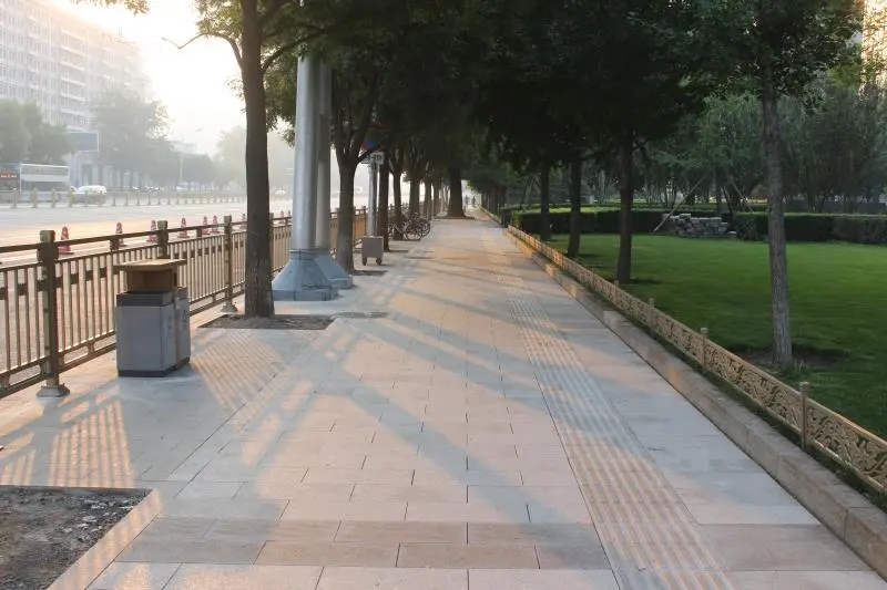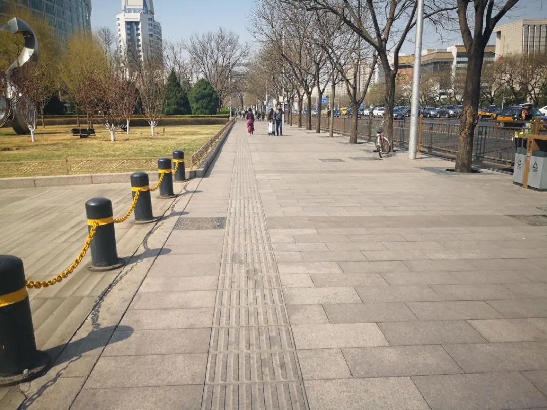 本次长安街步道大修西起复兴门桥东侧,向东经闹市口大街、西单北大街、府右街、南长街,东至天安门东通道,全长3.7km。道路全线人行道宽度为4.5~14m,采用两种材质步道砖。其中复兴门~西单北大街段为灰色砂基透水砖;西单北大街~南长街主要为花岗岩砖,树池之间采用灰色砂基透水砖进行铺装;南长街~天安门东地下通道采用花岗岩步道砖。本次步道大修总维修面积25389m2。工程总投资约1574万元。