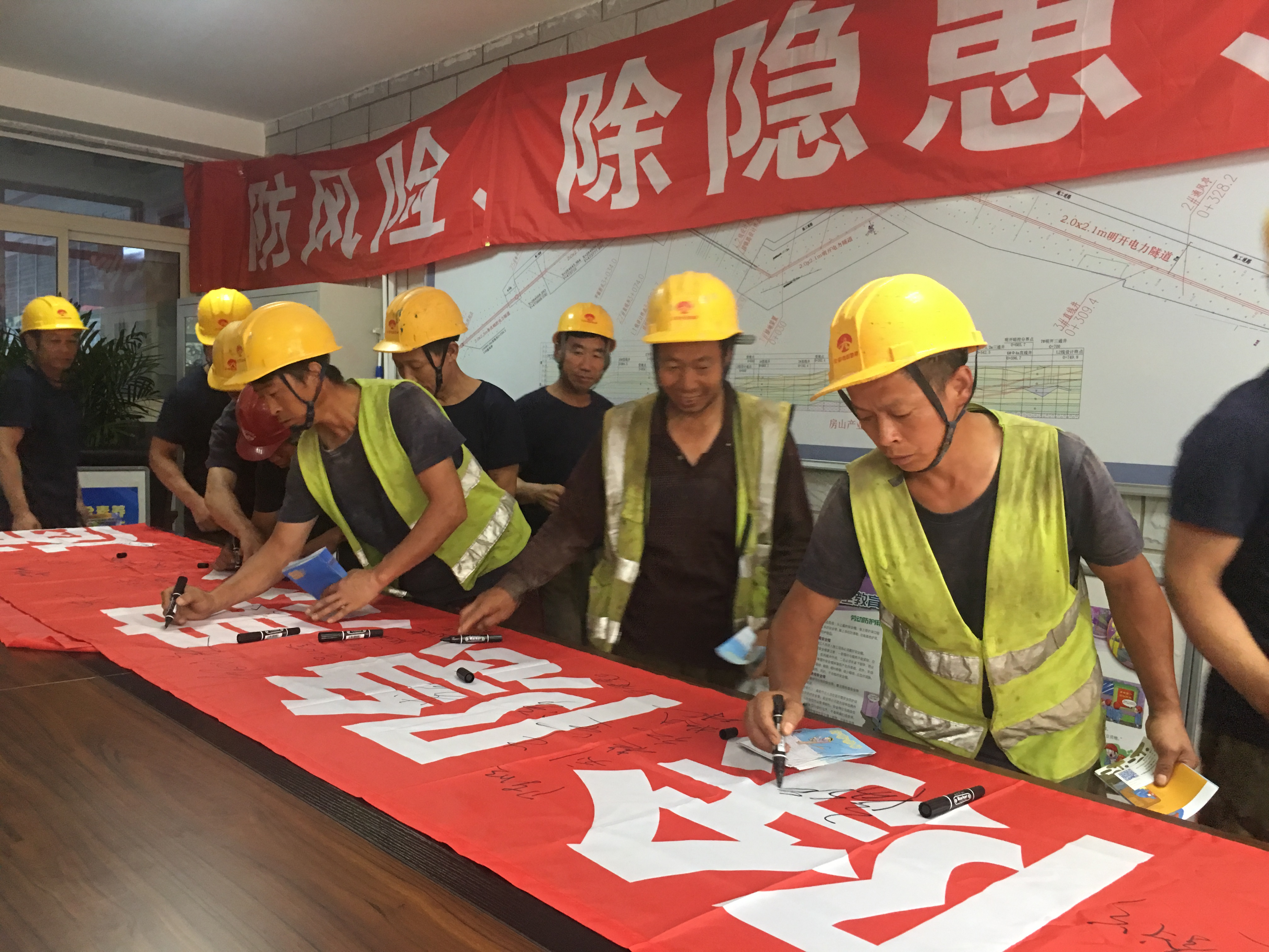 随后,与会领导为施工人员发放安全宣传资料及慰问品,并在安全条幅上集体签名。