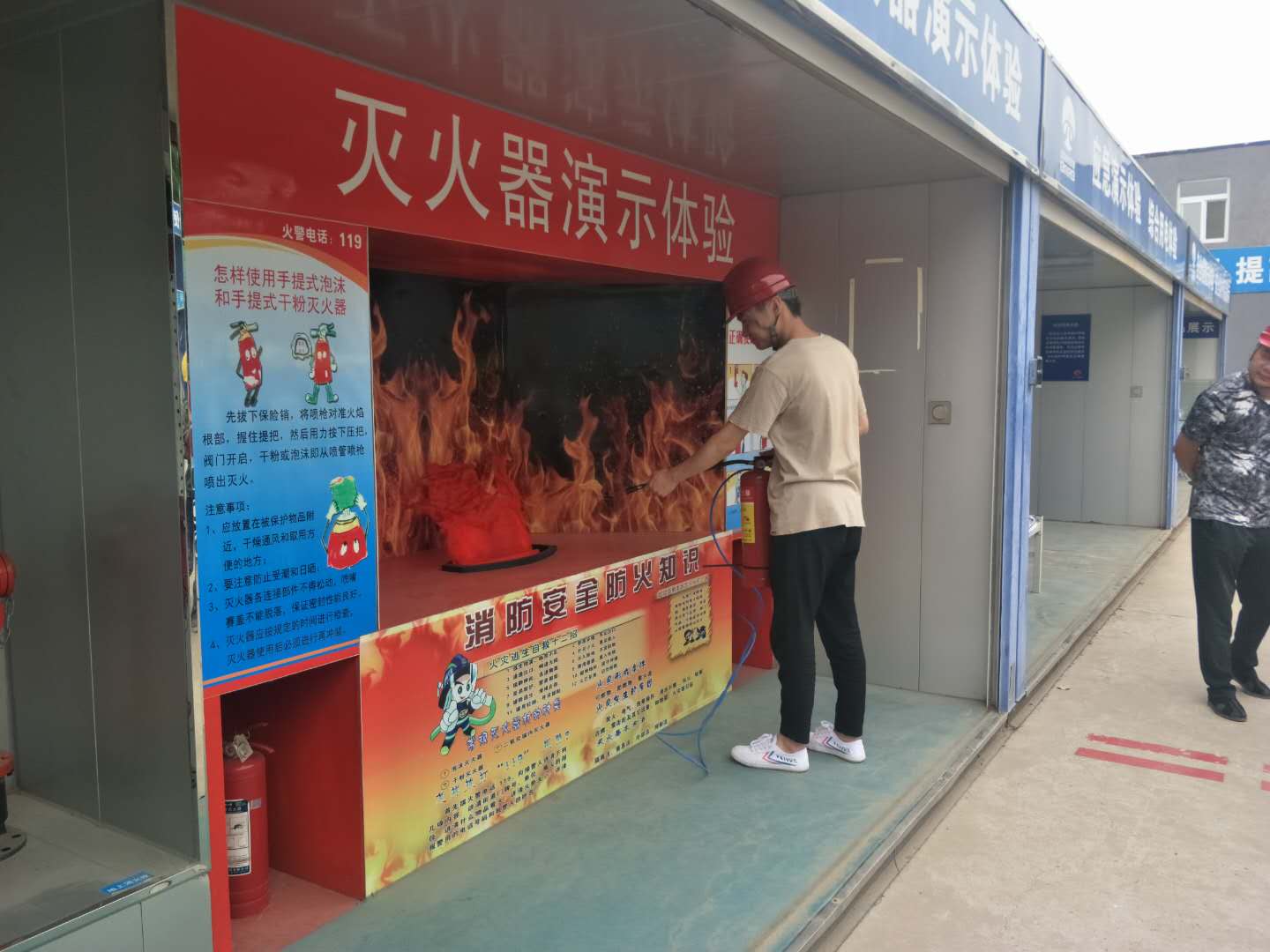 在现场体验区,大家亲身参与了高处坠落、墙体倒塌、综合用电、移动式操作架倾倒、平衡木、临边防护、安全帽冲击、劳动防护用品穿戴、人行马道、消防演示、急救演示等体验项目。